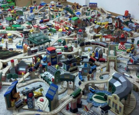 Huge Thomas Wooden Railway And Brio Layout In Basement With 3