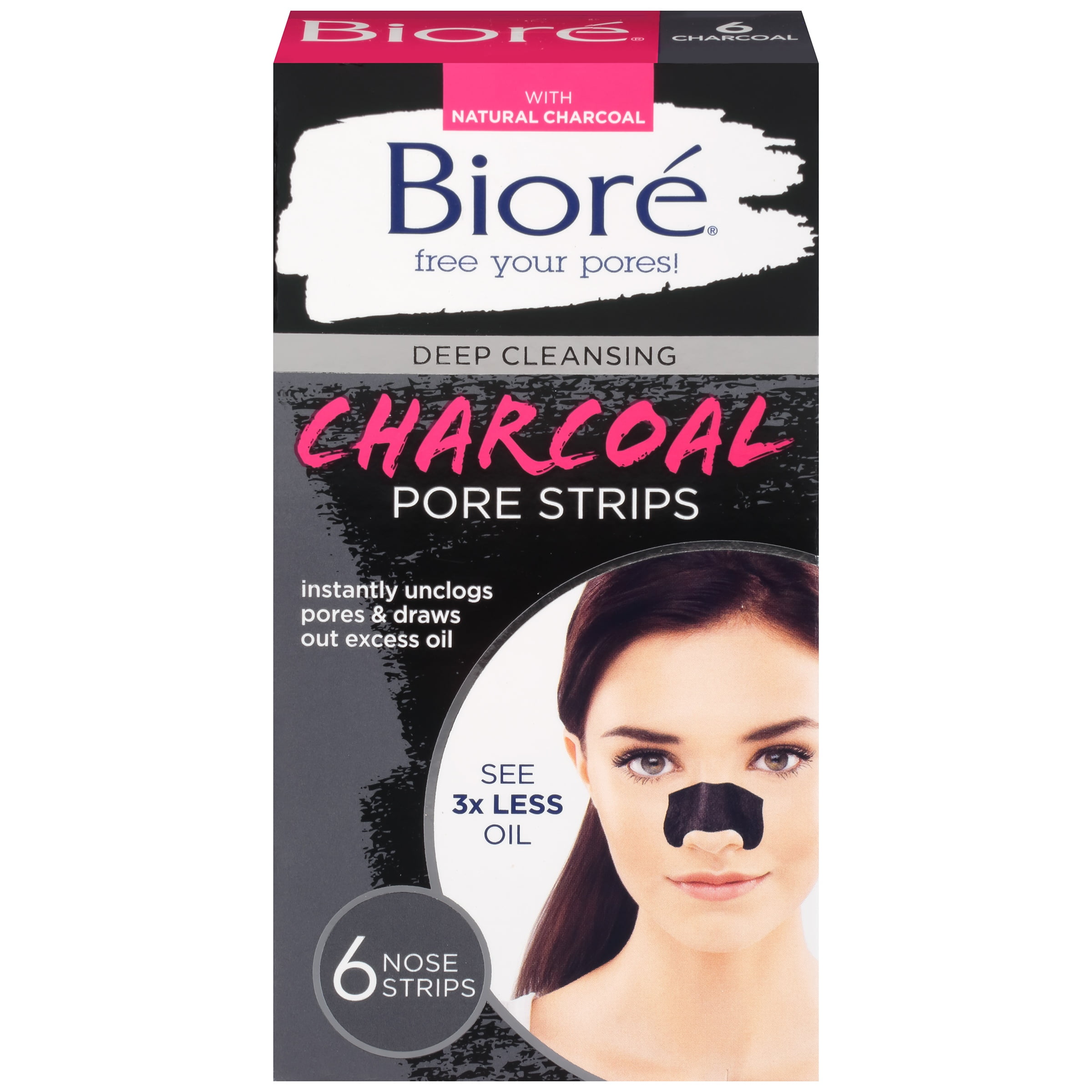 Biore Deep Cleansing Charcoal Pore Strips 6 Ct Walmart Com