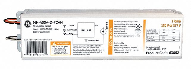 Ge Lighting Metal Halide Hid Ballast Dual Volt F Can 400 Max